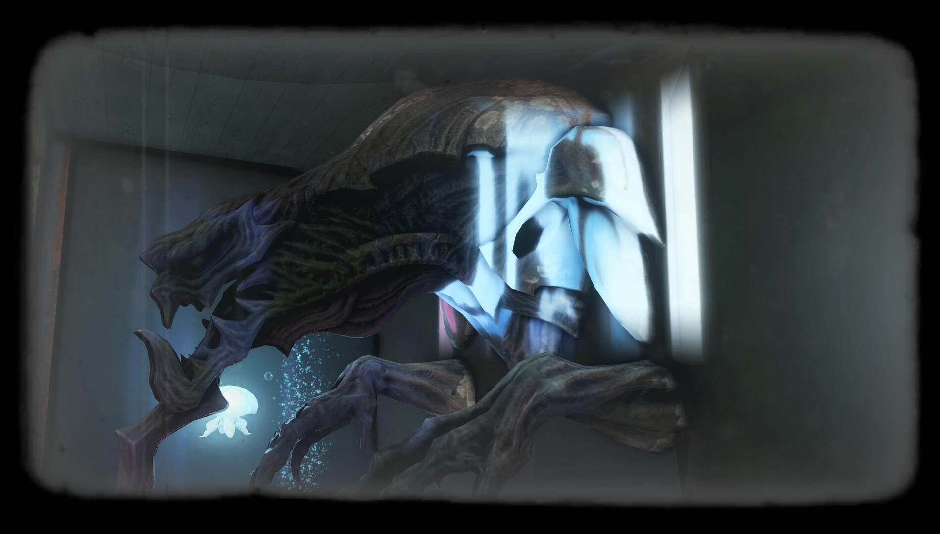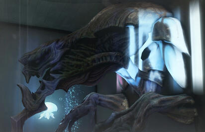Located during a random probing into the edge of reality, this being has shown an extreme level of fortitude; enough to survive even the vacuum of space by entering a form of self-induced stasis. Current testing shows that it "Breathes" something other than oxygen, using a set of organs that most closely resemble the gills of fish. Its intimidating structure implies that it is predatory in nature, but recent brain scans imply a higher level of intelligence.